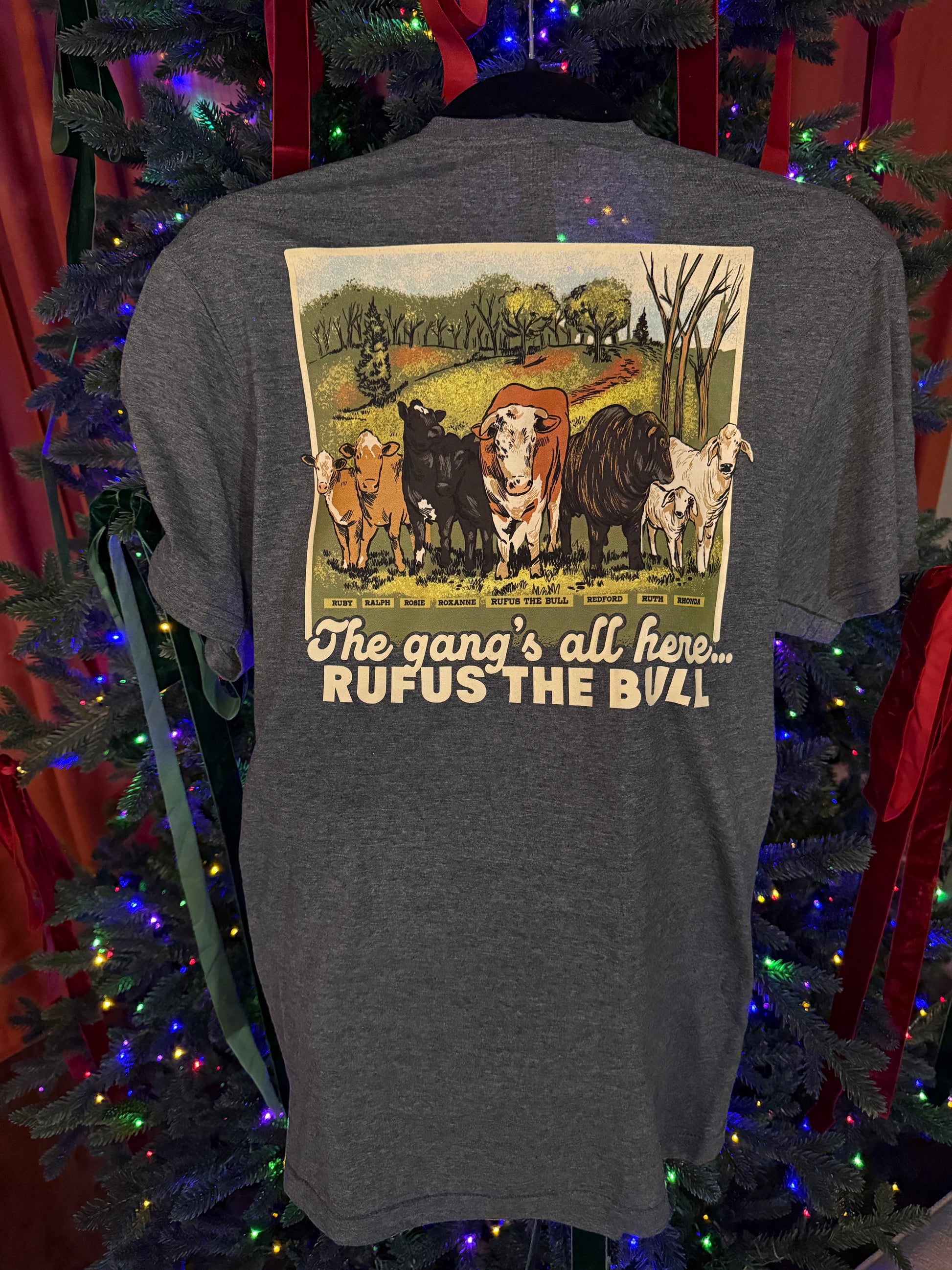 Celebrate the stars of the pasture with our exclusive T-shirt design! Featuring the one and only Rufus the Bull proudly standing with his beloved family: Ralph, Rosie, Roxanne, Redford, Ruby and NOW Rhonda and Ruth. Perfect for any fan who loves their TikTok adventures and wants to carry a piece of their wholesome farm charm wherever they go!